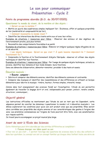 Page 2 du PDF de présentation : le son pour communiquer